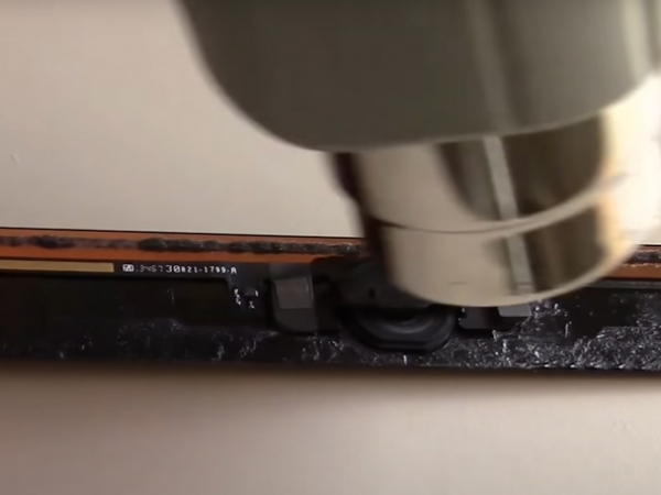 - Fjern komponenterne med varme og metalopbrydningsværktøjet. - Fjern den lille ring, der er forbundet med hjemknappen.