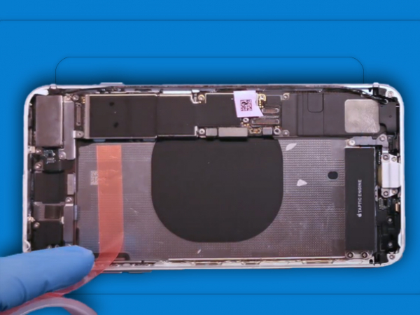 Tips: - Du bør altid teste dine reparationer, før du forsegler enheden igen. - Tilslut det nye batteri til bundkortet. - Tænd for enheden. - Når du er sikker på, at telefonen fungerer normalt, skal du slukke den igen. - Tag batteriet ud af stikket. - Brug en dobbeltsidet selvklæbende tape. - Der skal bruges to små stykker. - Sæt batteriet på plads. - Tryk forsigtigt rundt om batteriets omkreds for at få det til at binde sig til de selvklæbende strimler. - Tilslut batteriet til logikkortet en sidste gang.