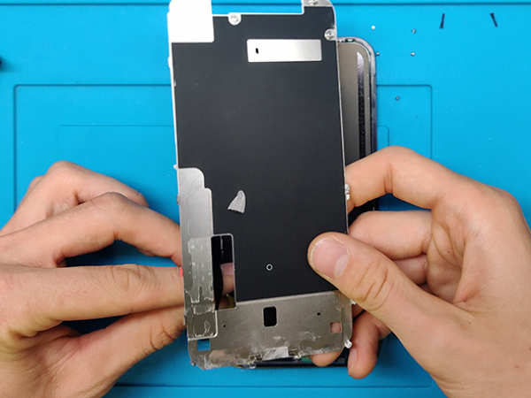 Sæt de 9 skruer fra det gamle LCD tilbage og fastgør skjoldet til det nye LCD.