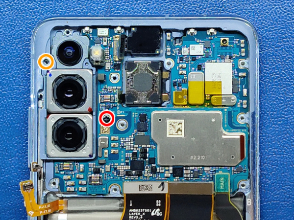 Fjern de skruer der fastholder bundkortet og kameraerne.