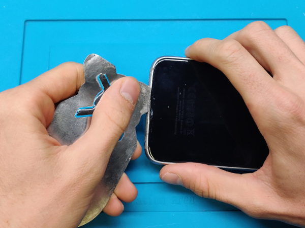 Denne telefon har ingen flade kabler eller stik under glasset, derfor behøver du ikke bekymre dig når du skærer igennem limen.