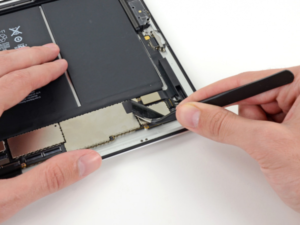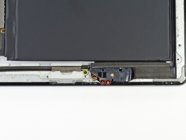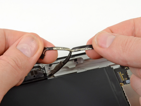 Fjern eventuel elektrikertape som dækker Wi-Fi-antennen, højttalerkabel og hjem-knappens fladkabel.
