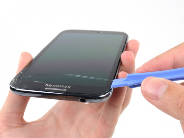 • Når du kommer til hjørnet af telefonen, flytter du plastikåbningsværktøjet forsigtig rundt om det.
