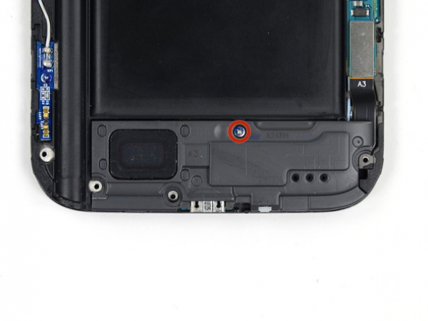• Fjern Phillips-skruen (3 mm) som fastgør højttalerkabinettet.