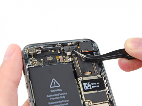 Se till att du viker Lightning-kontakten så att den inte är i vägen för logikkortet.