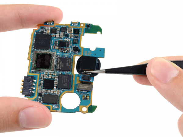 Sätt i vårt öppningsverktyg, eller fingret, i skåran på batterifacket och lyft ut batteriet uppåt.