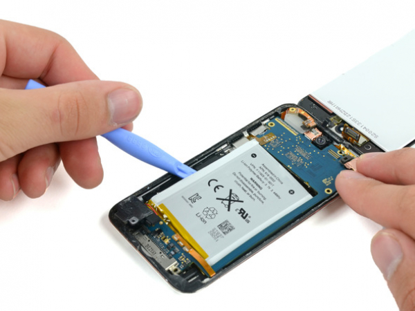 Försök inte att bända upp batteriet, börja bara med att lossa limmet.