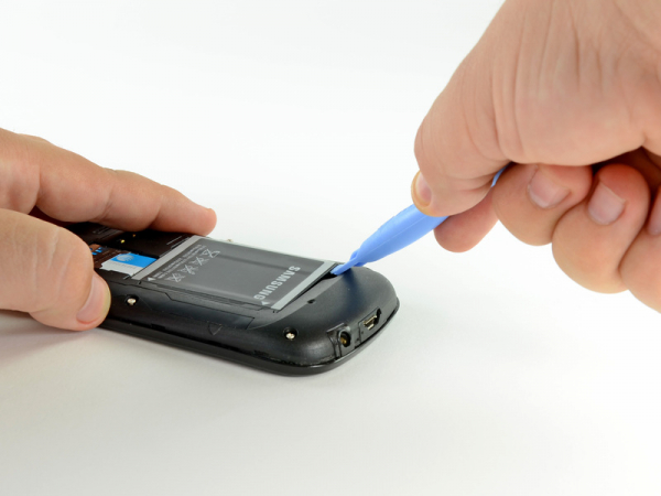 • Använd kanten av ett öppningsverktyg, lyft ut batteriet från änden närmast hörlursuttaget.