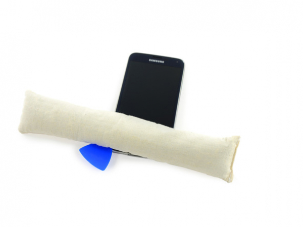 Det finns en smal remsa av lim ovanför högtalaren som säkrar toppen av telefonen. Flytta plektrumet längs toppen av högtalaren i syfte att undvika skadliga inre komponenter.