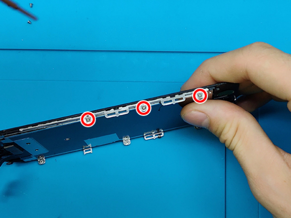 Ta loss metallkonsolen för hörluren, framkameran och sensorn.